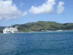After relaxing and chatting until twilight, we jumped in the dinghy and headed over to the Willie T for cocktails. The flashlight helped us avoid mooring buoys. The anchorage filled about 1/2 full. The Willie T was relatively quiet but it got more raucous later. After a round, back in the dinghy and motor over to the Pirate's Bight restaurant on the beach for dinner. That place was "just ok" - a bit pricey for the quality of food. But the conversation was great and we enjoyed our first night out from Tortola.