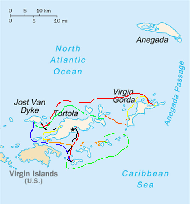 We decided that we wanted to go back to the British Virgin Islands, and in the summer of 2006, we drafted Butch and Lynn Florey to join us on a vacation. Butch owns the Tradewinds Sailing School and he often takes members of his school on exotic vacations. We joined him and 60 of his members to Greece (see our trip to Greece) in September 2004. Butch had been talking about going on a "real vacation" and the idea of the four of us just taking it easy in the easiest charter sailing area in the world sounded good to him.